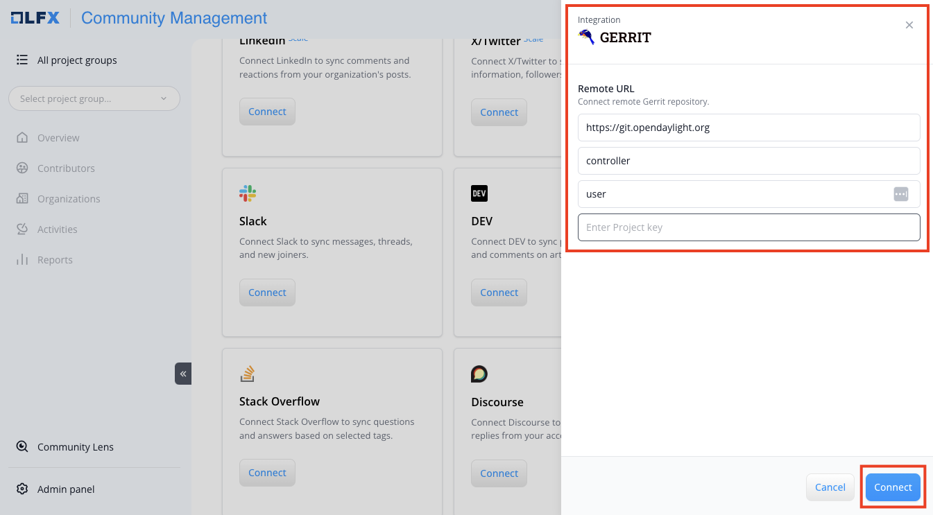 1. On the **INTEGRATIONS** page, you will see all the connectors. Scroll down and check the **Gerrit** connector.
