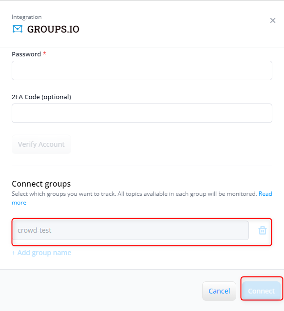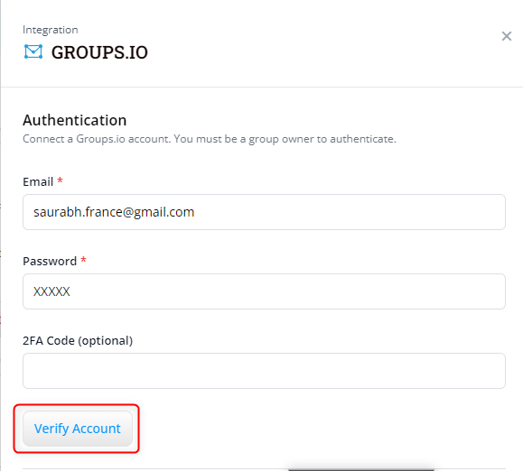 3. In the pop-up window, you must authenticate the groups.io account you want to connect to. This secure login process ensures that users are verified and authorized to access the system.