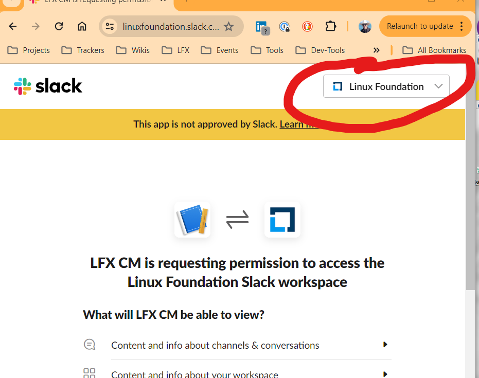 This is the quickest option if you do not have many channels. Go to the channel, type: @LFX CM, and send the message.
