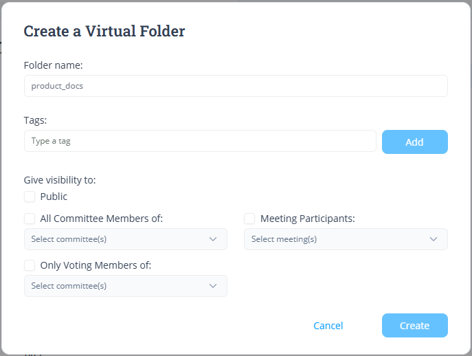 4. If you want only the voting members of a specific committee to have access to this folder, then check the 'Only Voting Members of' box.