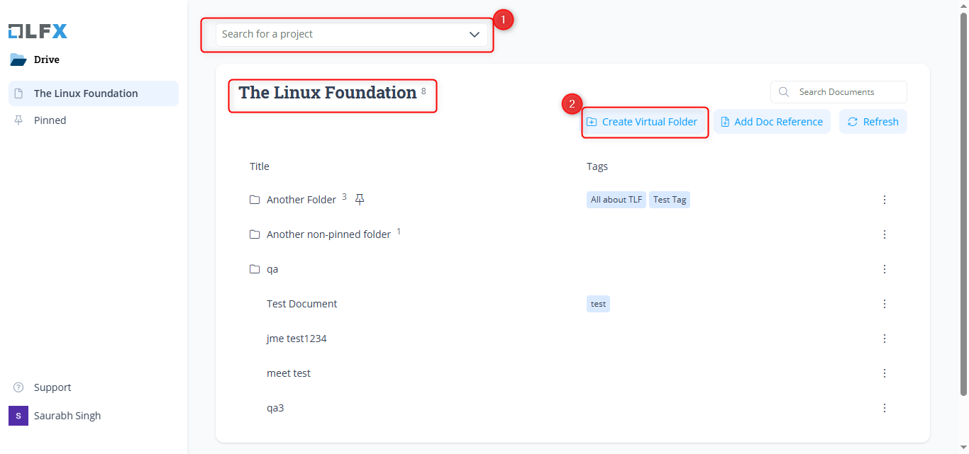 6. Click **Create** to create a virtual collection of documents from different folders.