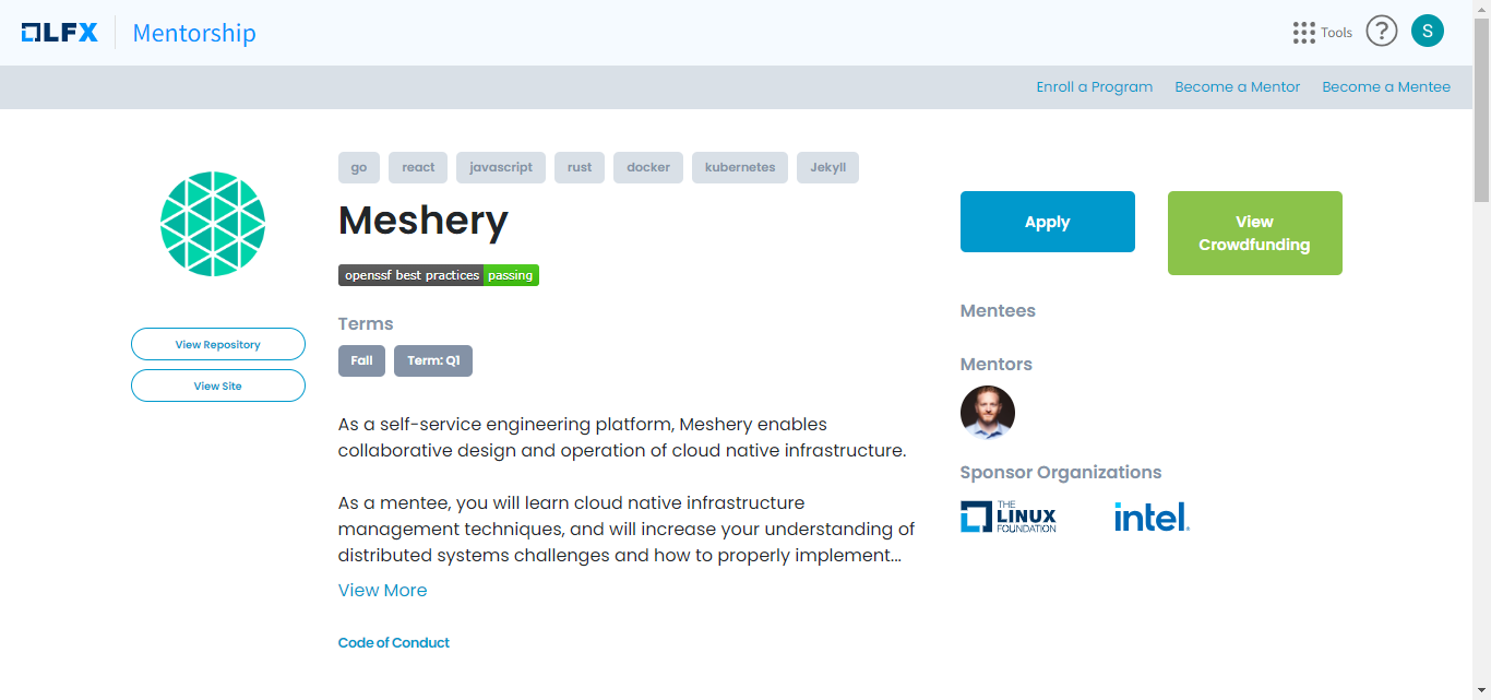 * From the crowdfunding project details page, click on **View Mentorship CTA** to toggle to the mentorship program information.