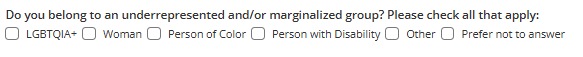 * Do you belong to an underrepresented and/or marginalized group? Please check all that apply