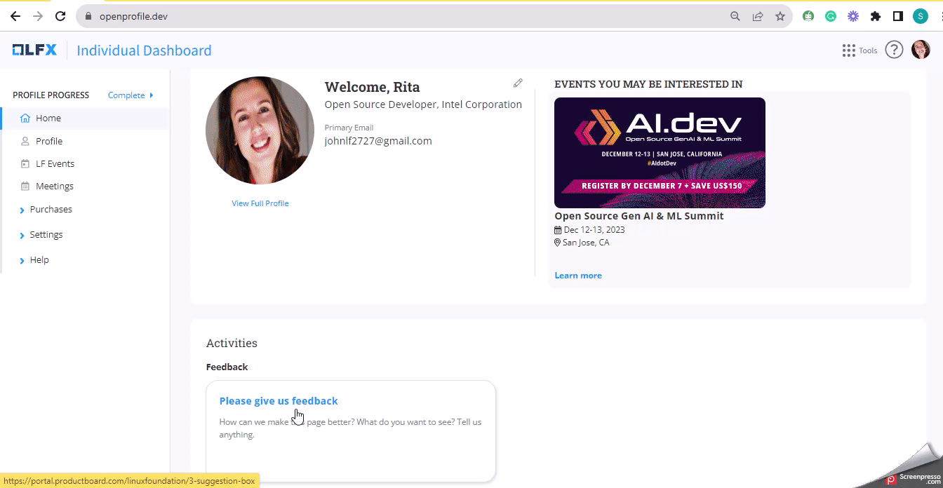 Your ideas matter! Click anywhere on the **Feedback** card on the **Individual Dashboard** to share your thoughts and suggestions.