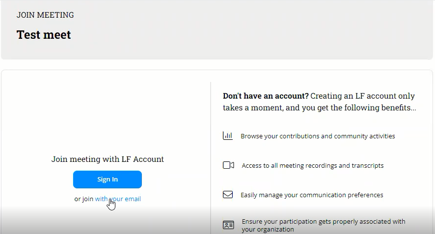 * When you are scheduling a meeting which is a **Public meeting** and where the **Restricted** settings is disabled, then the user can login by providing their name and email is optional.
