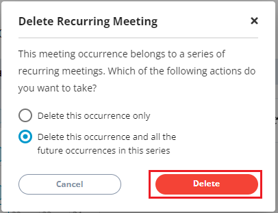 2.The Delete Recurring Meeting dialog box appears. You can either select: