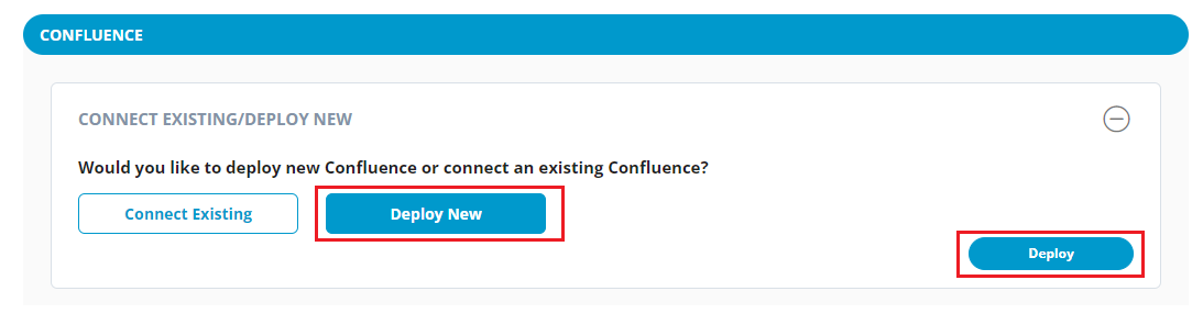 b) If you want to connect to a new server, select **Deploy New** and click **Deploy**. The Confluence page will be setup to a new service provider.