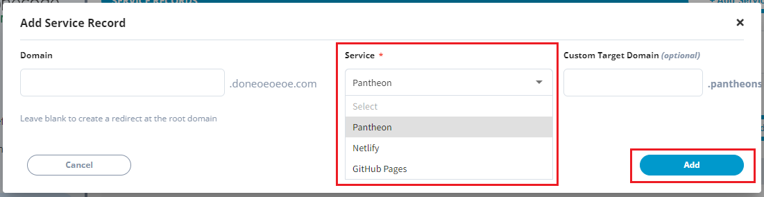 You can add service records such as Pantheon, Netlify, and GitHub pages for your domain.