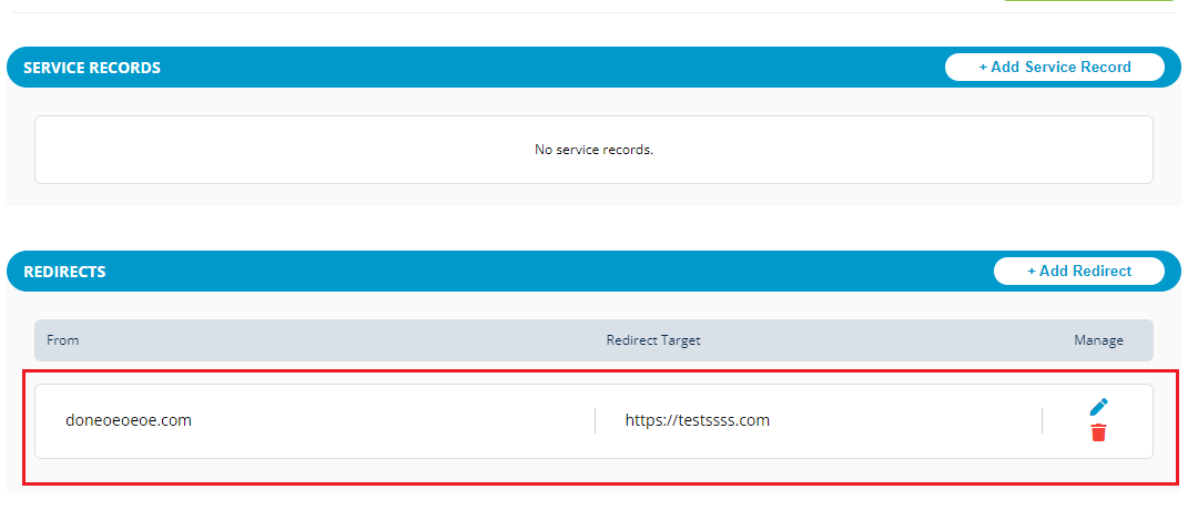 If you want to delete the redirect domain, click the delete ![](https://3411187760-files.gitbook.io/~/files/v0/b/gitbook-x-prod.appspot.com/o/spaces%2F-M2DCN9UgoRgMEkgnLyP-887967055%2Fuploads%2Fgit-blob-2e6a55d536f88c31b5c05888f58a9431dacb7b90%2FDelete_Icon.png?alt=media\&token=63a190c7-ca7c-4130-b5bd-2513c79c5781) icon.