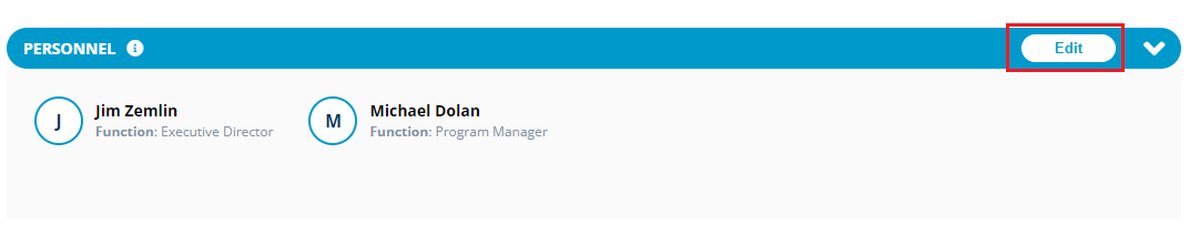 2\. Click **Edit** from the Personnel section to update personnel details.