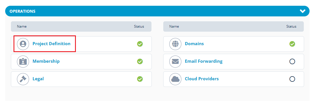 2\. Search for the required project. The Project dashboard appears. Click **Project Definition** from the **Operations** tab.