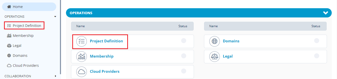 You can also navigate to Project Definitions from the Vertical Sidebar navigation menu. Click **Operations** and then select **Project Definition**.
