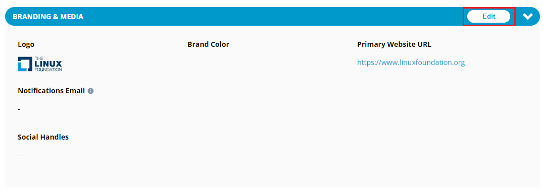 2\. Click **Edit** from the Branding and Media section to update branding details.
