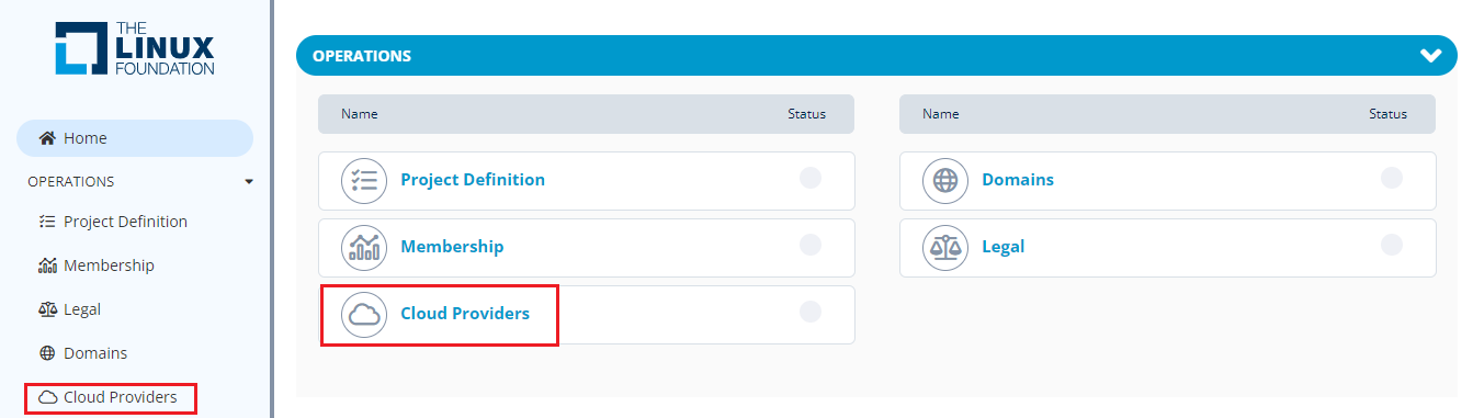 You can also navigate to Cloud Providers from the Vertical Sidebar navigation menu. Click **Operations** and then select **Cloud Providers**.