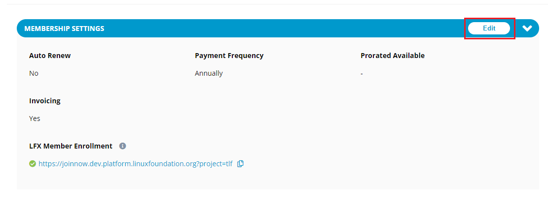 2\. The Membership page appears. Click **Edit** to add the membership billing details.