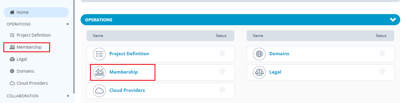1.Click on the required project and click **Membership** from the **Operations** tab.