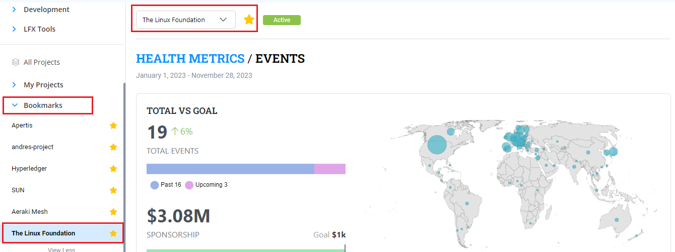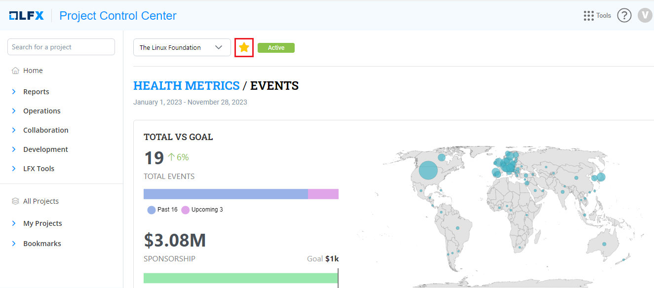 Bookmarks enable you to save your favorite projects for easy access. By clicking the star button, you can mark a project as a favorite, allowing you to view all bookmarked projects under one tab.