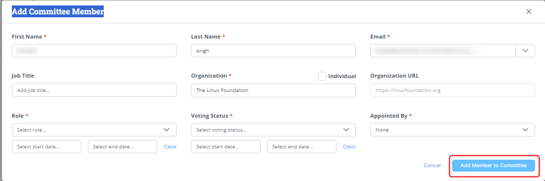 6. On the next page, fill out all the required details and click **Add Member to Committee button.**