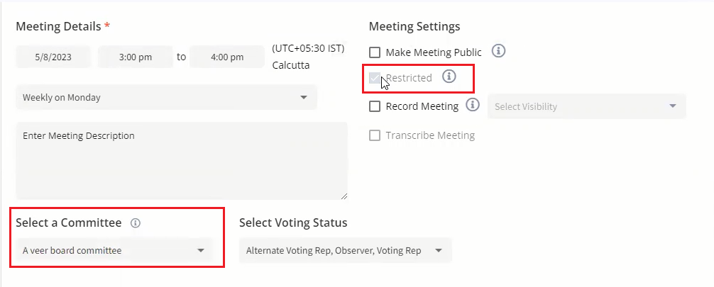 * When scheduling a **Private meeting** with **Restricted** settings enabled, participants must log in using the name and email ID provided during scheduling. Guest credentials are not allowed; participants must use their assigned email.