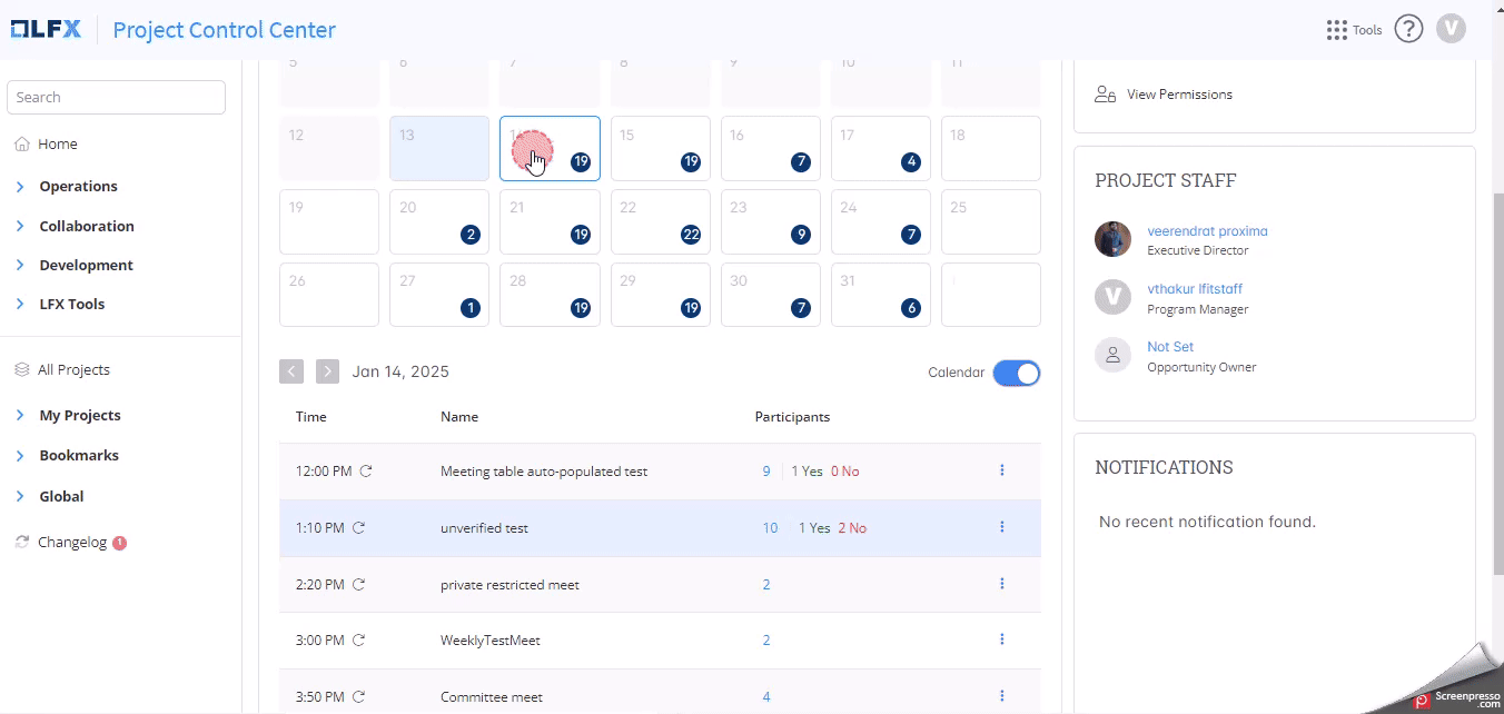 2. Click on the date to see the scheduled meetings.