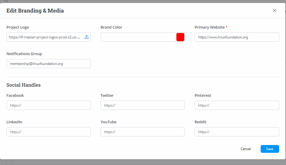 You can also provide details related to the branding of the project like uploading the logo for the project and providing brand color and website details.