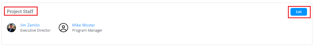 2. Click **Edit** from the Project Staff section to update project staff information.