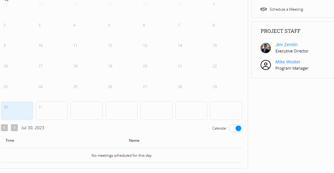 Project Setup also lets you update personnel information for Executive Director and Program Manager. You may only add on Program Manager at this time. This section is informational only and does not convey PCC permissions.