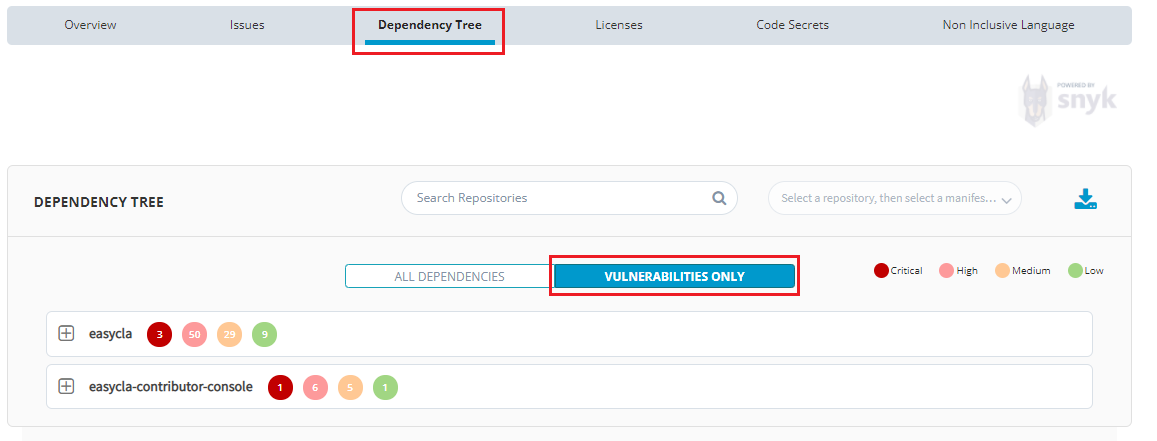 Click Dependency Tree and select Vulnerabilities Only.